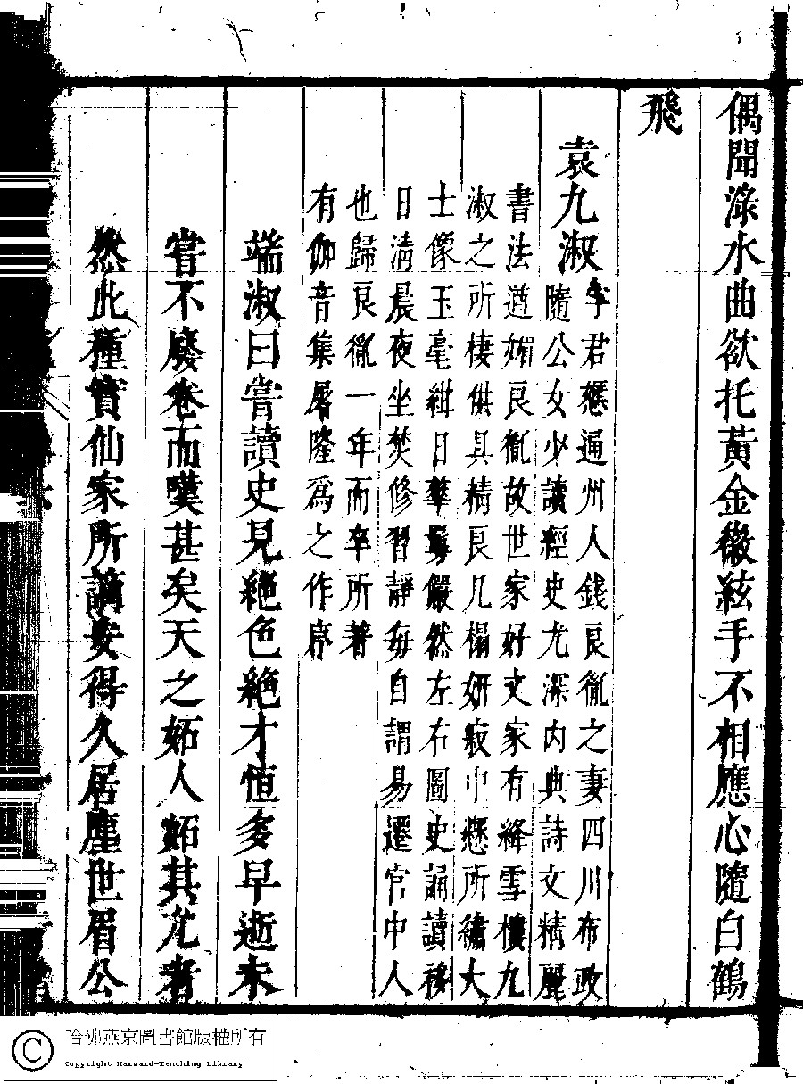 | (PRINT FRIENDLY VERSION) 名媛詩緯初編(清王端淑輯)。清康熙六年(1667)清音堂刻本 ![]() Page : 6.10a | click for larger image | Back |