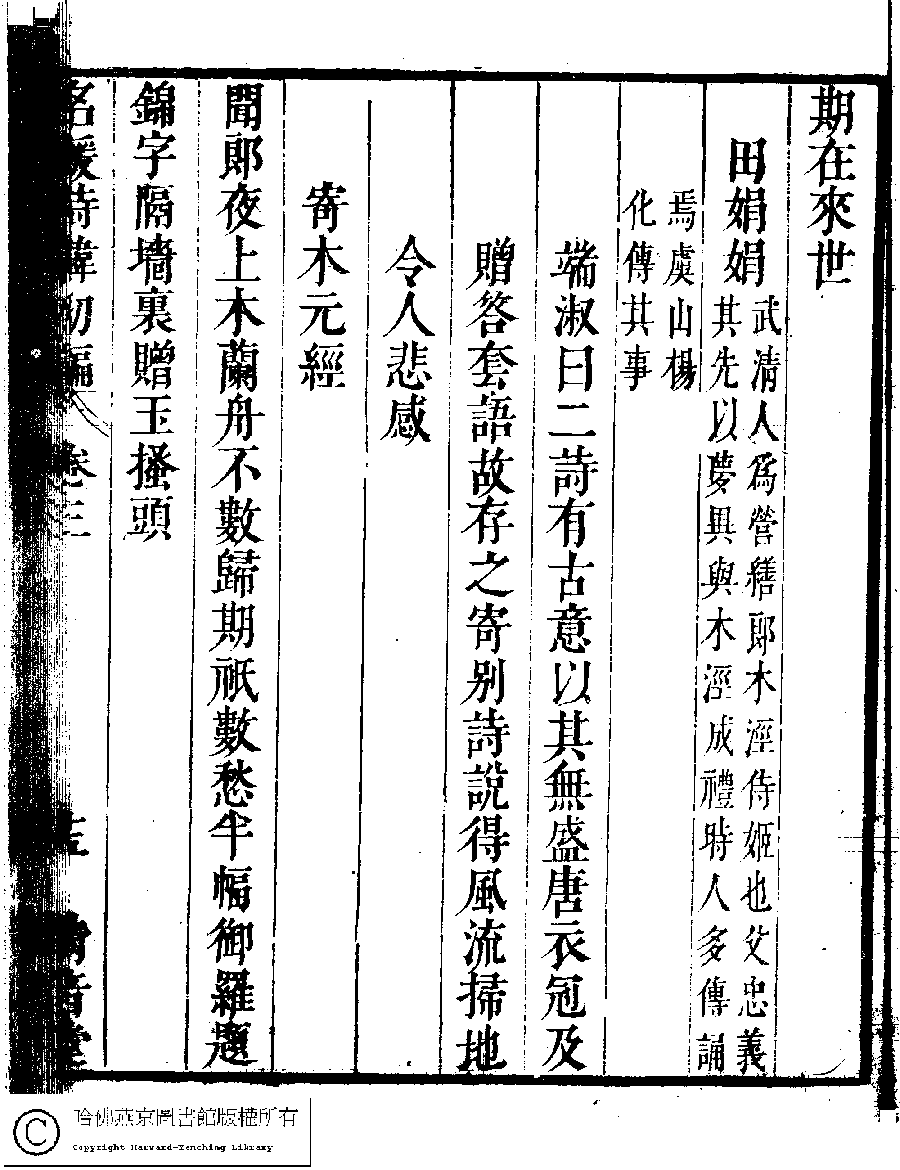 | (PRINT FRIENDLY VERSION) 名媛詩緯初編(清王端淑輯)。清康熙六年(1667)清音堂刻本 ![]() Page : 3.15a | click for larger image | Back |