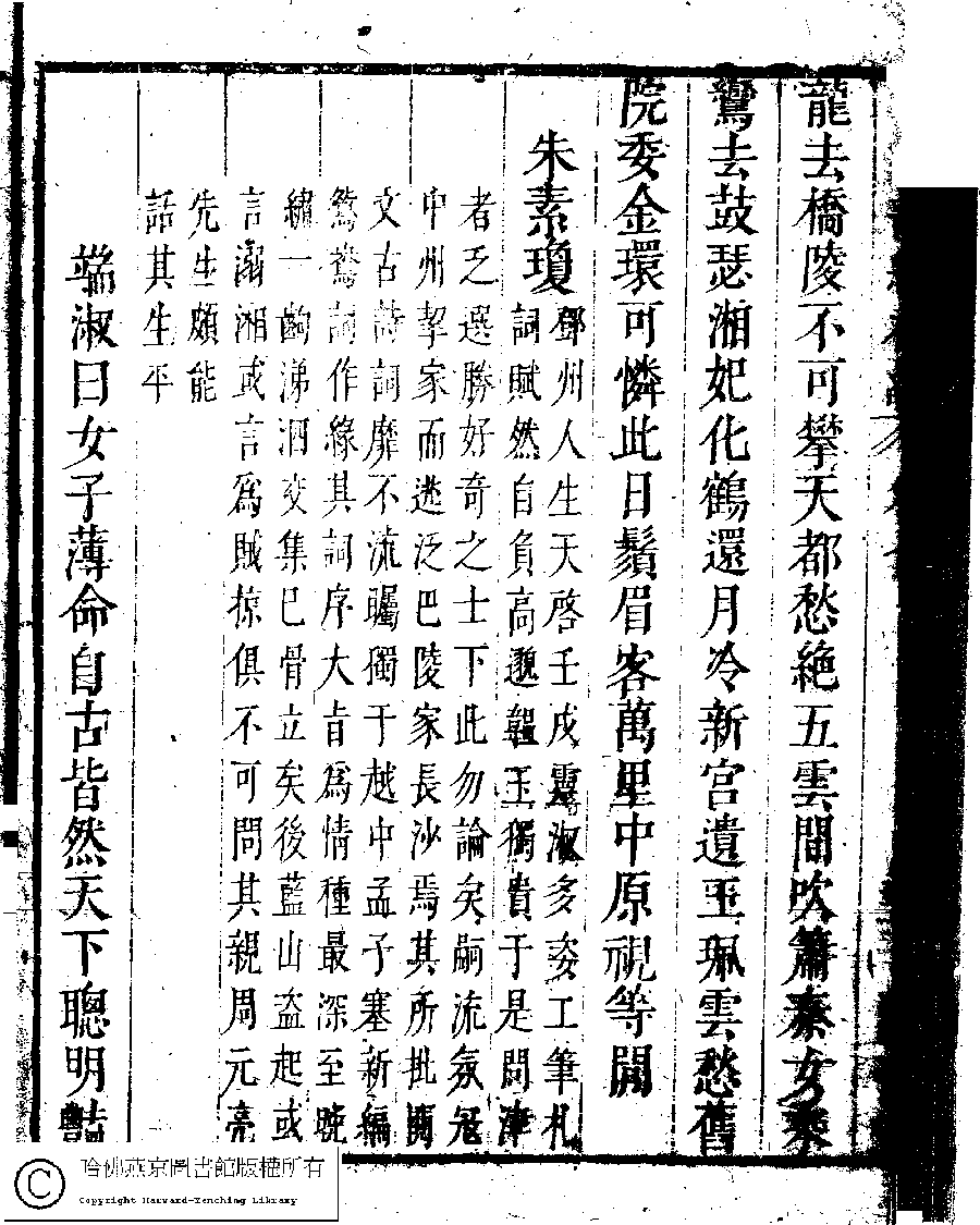 | (PRINT FRIENDLY VERSION) 名媛詩緯初編(清王端淑輯)。清康熙六年(1667)清音堂刻本 ![]() Page : 7.21b | click for larger image | Back |
