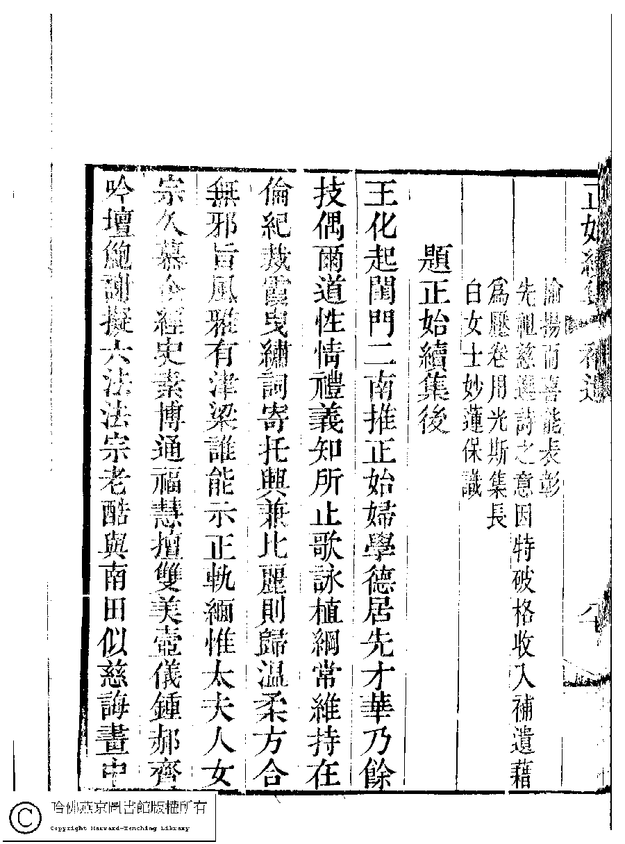 | (PRINT FRIENDLY VERSION) 國朝閨秀正始續集﹕十卷﹐附錄﹕一卷﹐補遺﹕一卷﹐輓詞﹕一卷(清惲珠輯)。清道光十六年(1836)紅香館刻本。 ![]() Page : 補遺.81b | click for larger image | 國朝閨秀正始續集﹕十卷﹐附錄﹕一卷﹐補遺﹕一卷﹐輓詞﹕一卷(清惲珠輯)。清道光十六年(1836)紅香館刻本。![]() Page : 補遺.81a | click for larger image | 國朝閨秀正始續集﹕十卷﹐附錄﹕一卷﹐補遺﹕一卷﹐輓詞﹕一卷(清惲珠輯)。清道光十六年(1836)紅香館刻本。![]() Page : 補遺.80b | click for larger image | 國朝閨秀正始續集﹕十卷﹐附錄﹕一卷﹐補遺﹕一卷﹐輓詞﹕一卷(清惲珠輯)。清道光十六年(1836)紅香館刻本。![]() Page : 補遺.80a | click for larger image | Back |