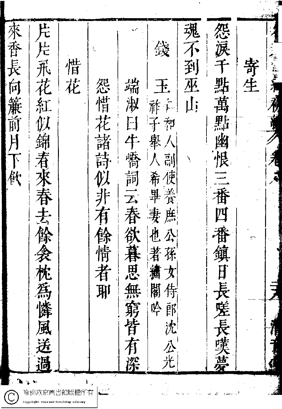 | (PRINT FRIENDLY VERSION) 名媛詩緯初編(清王端淑輯)。清康熙六年(1667)清音堂刻本 ![]() Page : 8.28b | click for larger image | Back |