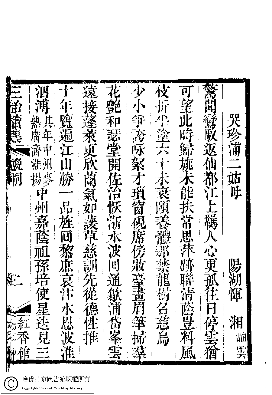 | (PRINT FRIENDLY VERSION) 國朝閨秀正始續集﹕十卷﹐附錄﹕一卷﹐補遺﹕一卷﹐輓詞﹕一卷(清惲珠輯)。清道光十六年(1836)紅香館刻本。 ![]() Page : 輓詞.2b | click for larger image | 國朝閨秀正始續集﹕十卷﹐附錄﹕一卷﹐補遺﹕一卷﹐輓詞﹕一卷(清惲珠輯)。清道光十六年(1836)紅香館刻本。![]() Page : 輓詞.2a | click for larger image | Back |