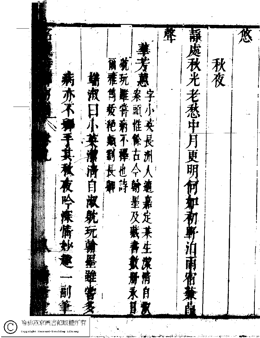 | (PRINT FRIENDLY VERSION) 名媛詩緯初編(清王端淑輯)。清康熙六年(1667)清音堂刻本 ![]() Page : 9.8a | click for larger image | Back |