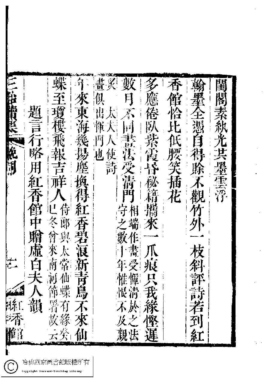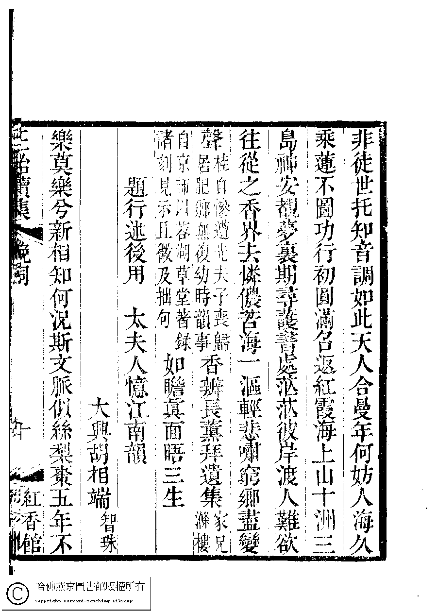 | (PRINT FRIENDLY VERSION) 國朝閨秀正始續集﹕十卷﹐附錄﹕一卷﹐補遺﹕一卷﹐輓詞﹕一卷(清惲珠輯)。清道光十六年(1836)紅香館刻本。 ![]() Page : 輓詞.11a | click for larger image | 國朝閨秀正始續集﹕十卷﹐附錄﹕一卷﹐補遺﹕一卷﹐輓詞﹕一卷(清惲珠輯)。清道光十六年(1836)紅香館刻本。![]() Page : 輓詞.10b | click for larger image | 國朝閨秀正始續集﹕十卷﹐附錄﹕一卷﹐補遺﹕一卷﹐輓詞﹕一卷(清惲珠輯)。清道光十六年(1836)紅香館刻本。![]() Page : 輓詞.10a | click for larger image | Back |