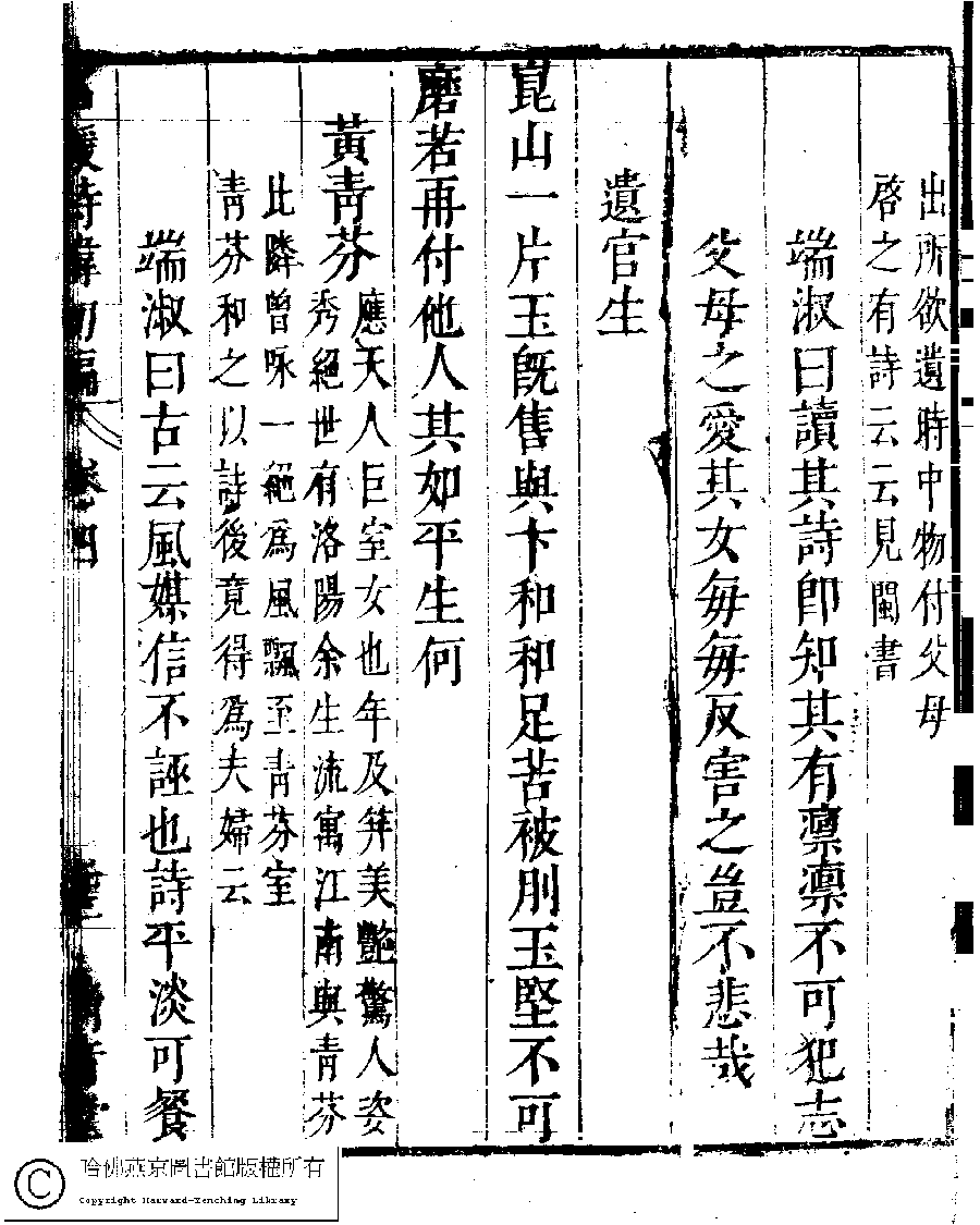 | (PRINT FRIENDLY VERSION) 名媛詩緯初編(清王端淑輯)。清康熙六年(1667)清音堂刻本 ![]() Page : 4.23a | click for larger image | 名媛詩緯初編(清王端淑輯)。清康熙六年(1667)清音堂刻本![]() Page : 4.22b | click for larger image | Back |
