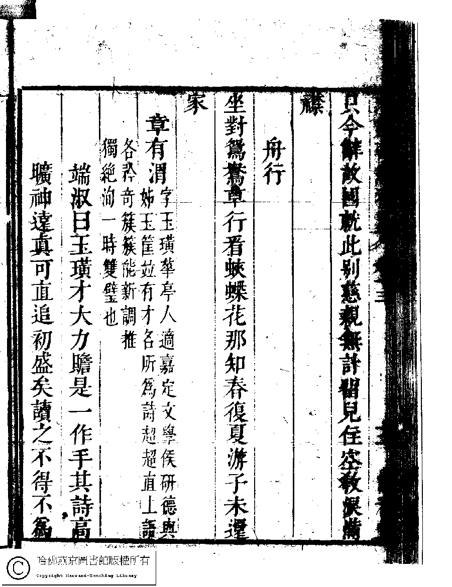 | (PRINT FRIENDLY VERSION) 名媛詩緯初編(清王端淑輯)。清康熙六年(1667)清音堂刻本 ![]() Page : 13.12b | click for larger image | Back |
