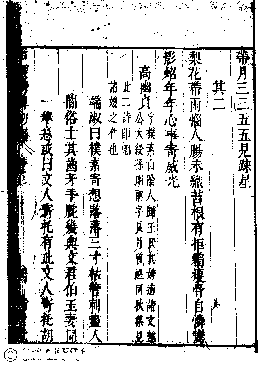 | (PRINT FRIENDLY VERSION) 名媛詩緯初編(清王端淑輯)。清康熙六年(1667)清音堂刻本 ![]() Page : 13.24a | click for larger image | Back |