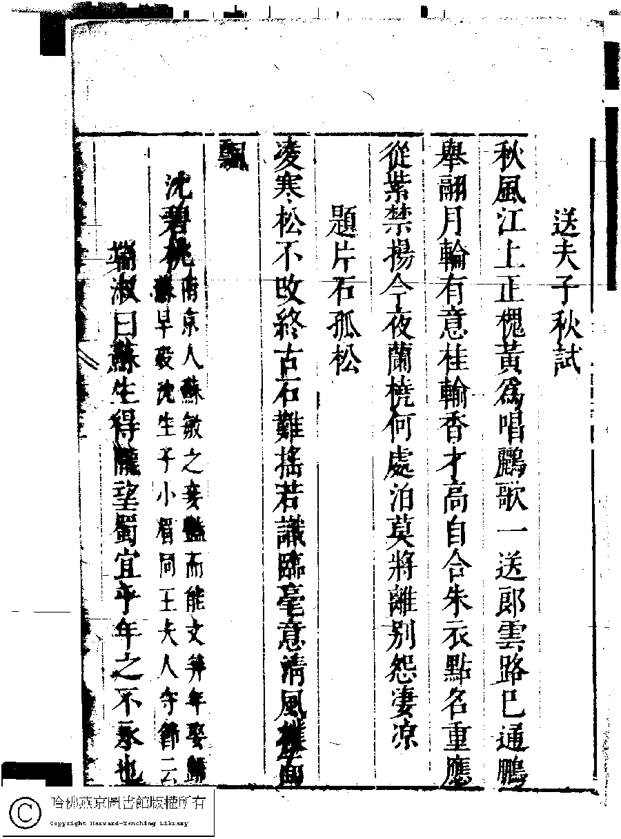 | (PRINT FRIENDLY VERSION) 名媛詩緯初編(清王端淑輯)。清康熙六年(1667)清音堂刻本 ![]() Page : 13.52a | click for larger image | Back |