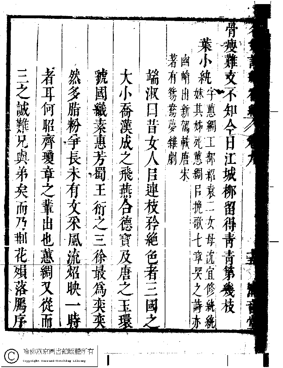 | (PRINT FRIENDLY VERSION) 名媛詩緯初編(清王端淑輯)。清康熙六年(1667)清音堂刻本 ![]() Page : 9.15b | click for larger image | Back |