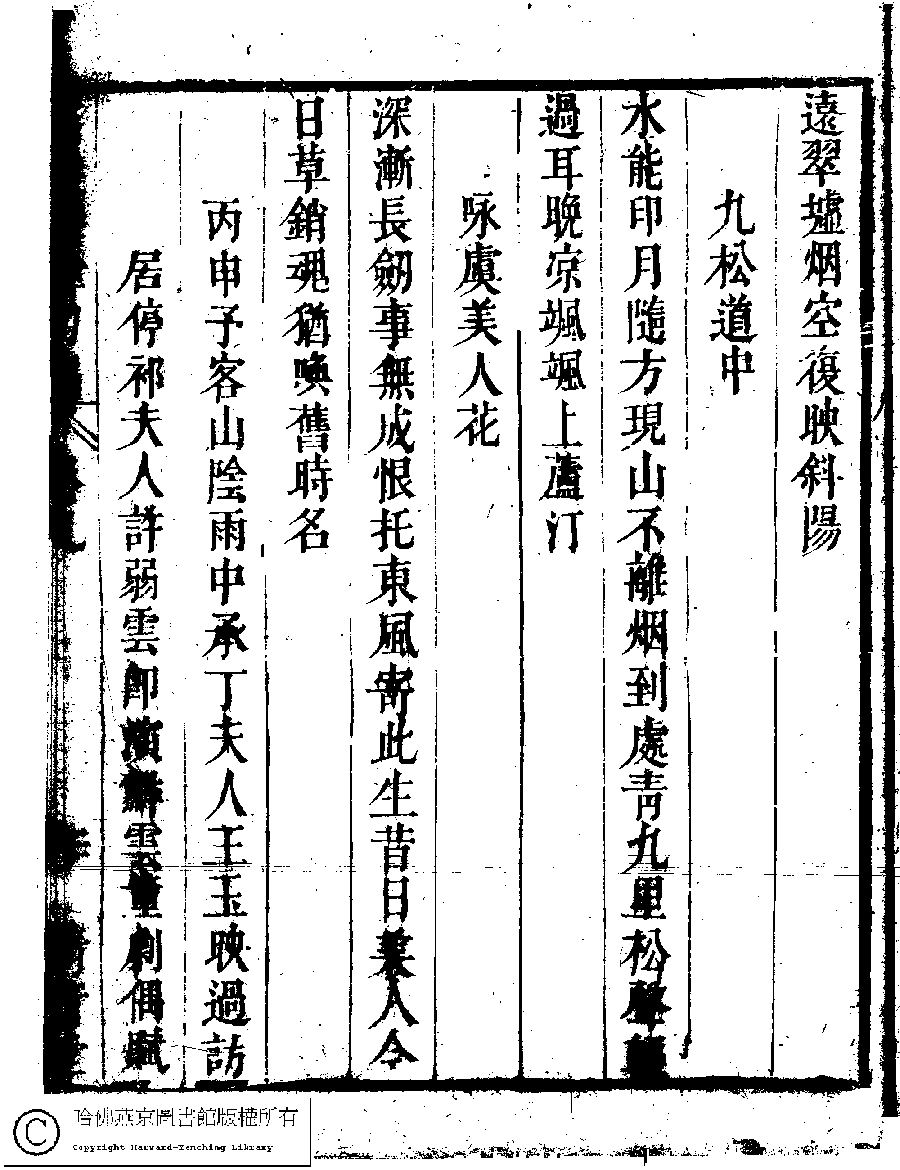 | (PRINT FRIENDLY VERSION) 名媛詩緯初編(清王端淑輯)。清康熙六年(1667)清音堂刻本 ![]() Page : 9.20a | click for larger image | Back |