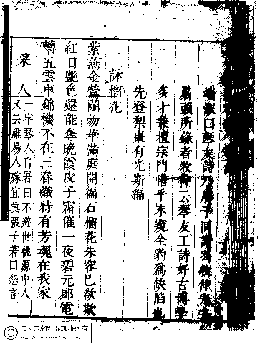 | (PRINT FRIENDLY VERSION) 名媛詩緯初編(清王端淑輯)。清康熙六年(1667)清音堂刻本 ![]() Page : 14.12b | click for larger image | Back |