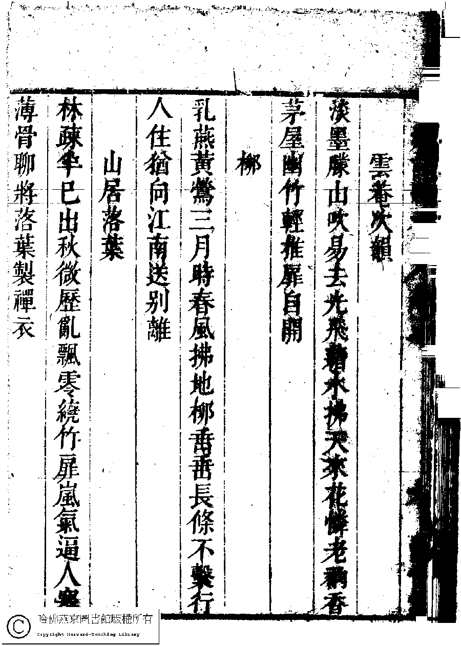 | (PRINT FRIENDLY VERSION) 名媛詩緯初編(清王端淑輯)。清康熙六年(1667)清音堂刻本 ![]() Page : 15.6b | click for larger image | Back |