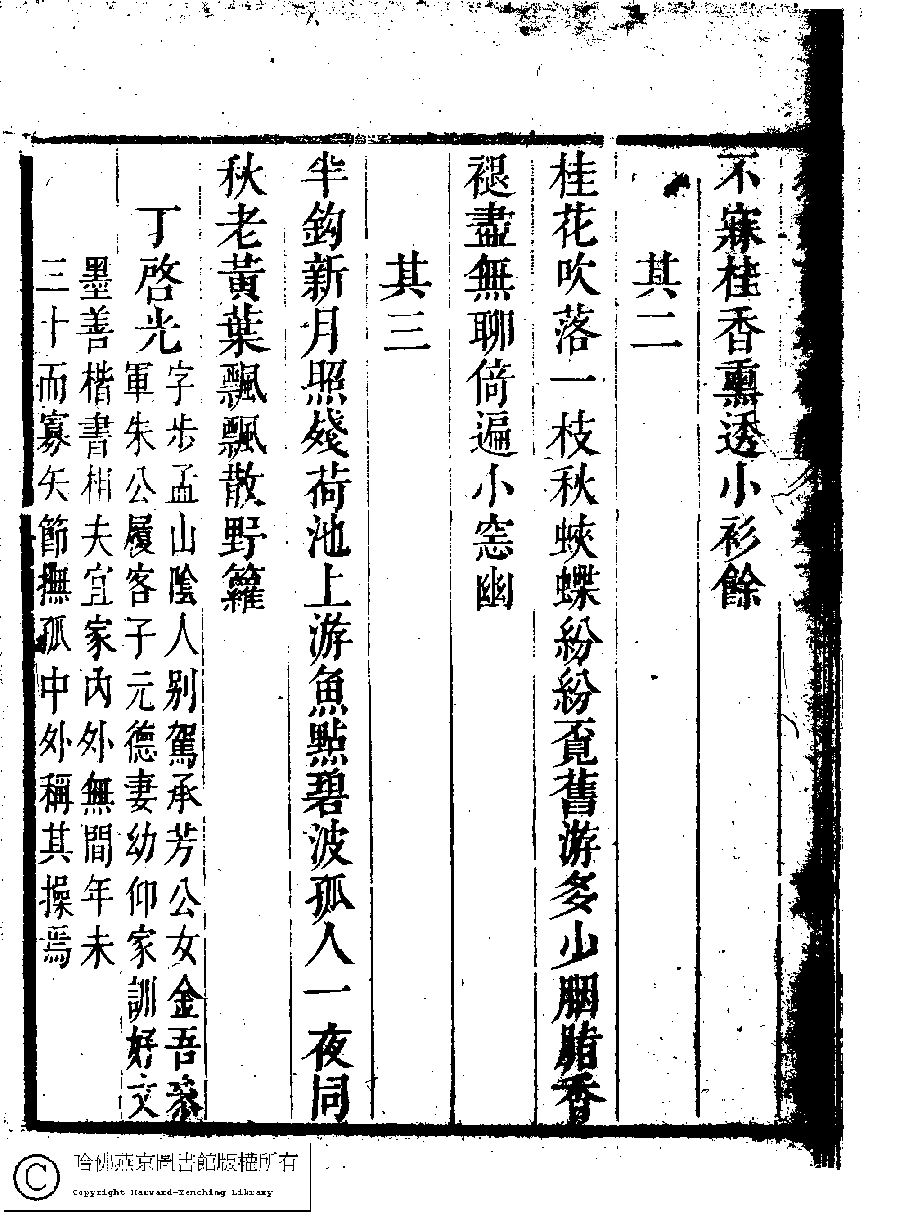 | (PRINT FRIENDLY VERSION) 名媛詩緯初編(清王端淑輯)。清康熙六年(1667)清音堂刻本 ![]() Page : 17.5b | click for larger image | Back |