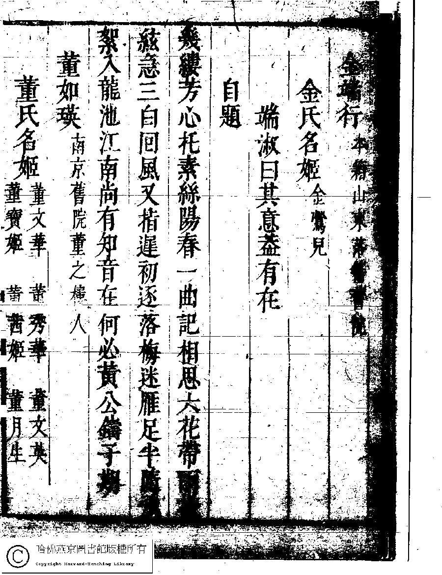 | (PRINT FRIENDLY VERSION) 名媛詩緯初編(清王端淑輯)。清康熙六年(1667)清音堂刻本 ![]() Page : 25.4b | click for larger image | Back |