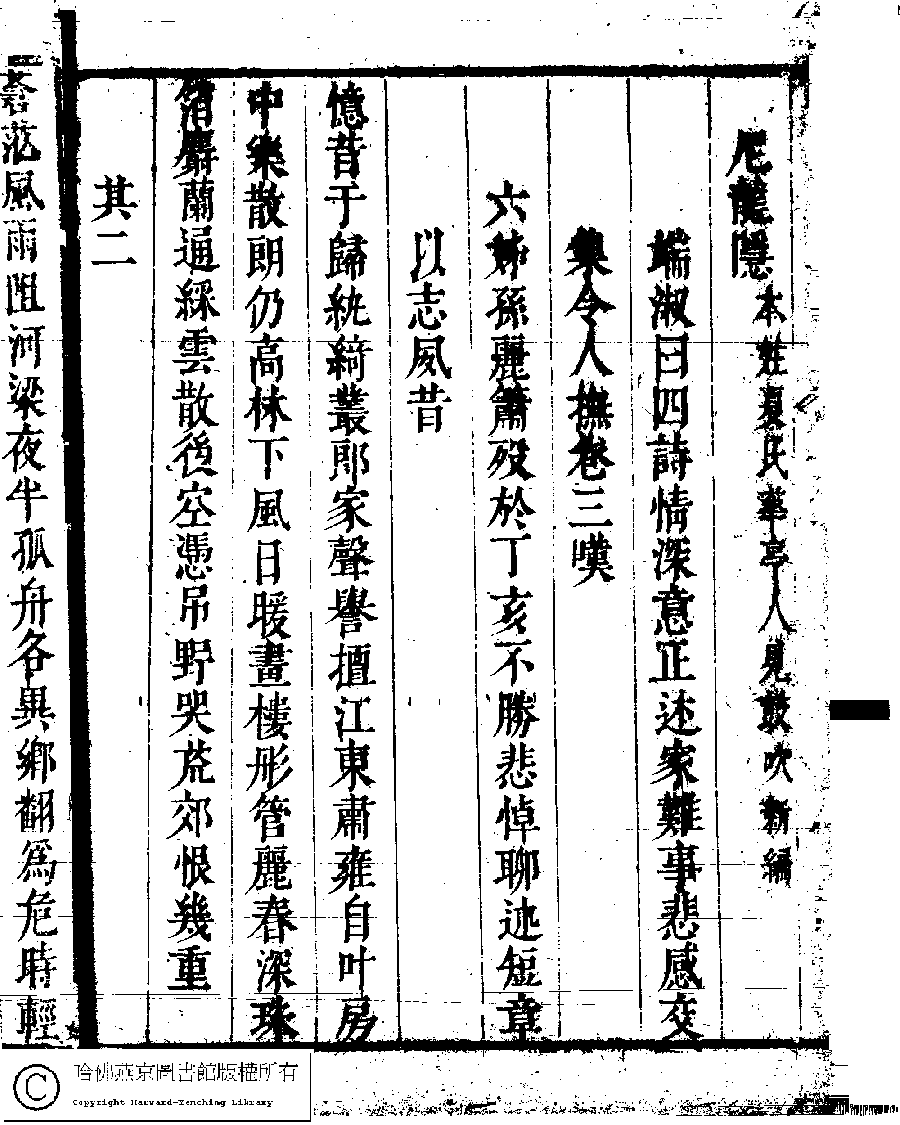 | (PRINT FRIENDLY VERSION) 名媛詩緯初編(清王端淑輯)。清康熙六年(1667)清音堂刻本 ![]() Page : 26.8b | click for larger image | Back |