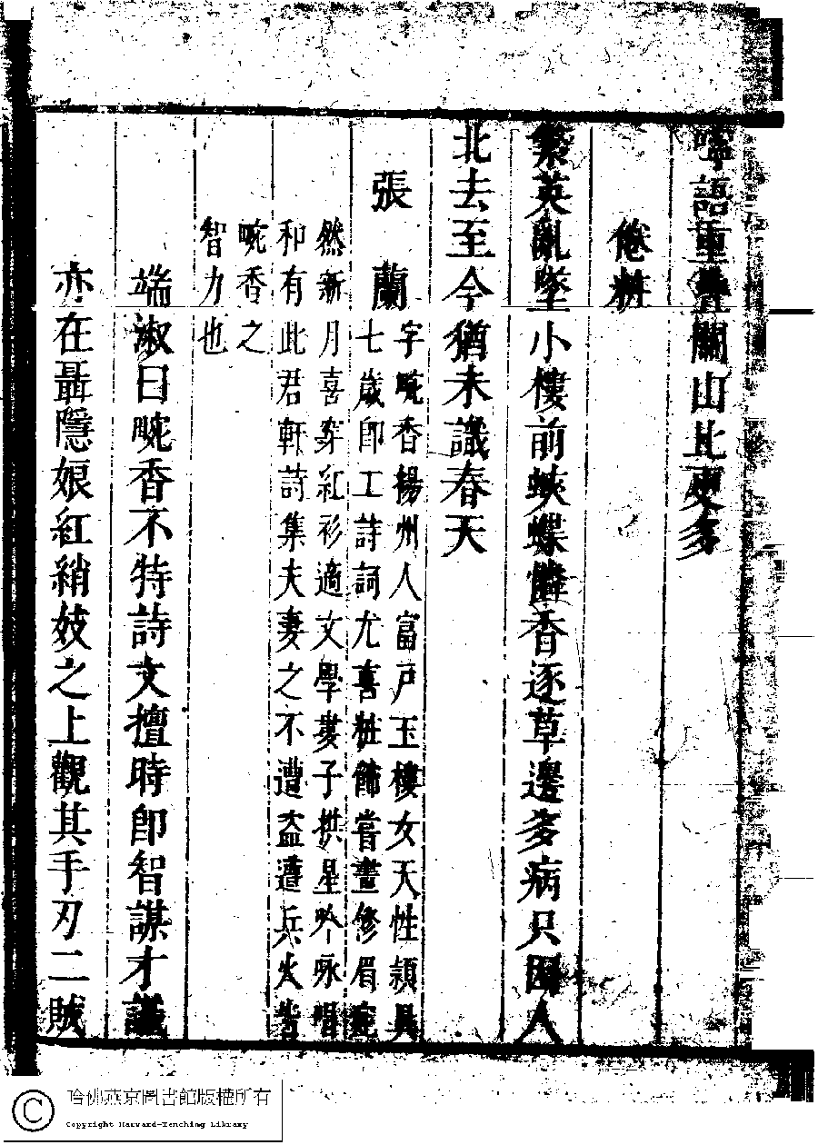 | (PRINT FRIENDLY VERSION) 名媛詩緯初編(清王端淑輯)。清康熙六年(1667)清音堂刻本 ![]() Page : 18.2b | click for larger image | Back |