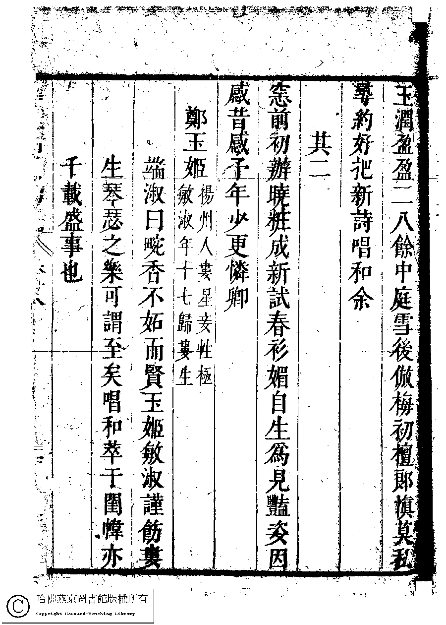 | (PRINT FRIENDLY VERSION) 名媛詩緯初編(清王端淑輯)。清康熙六年(1667)清音堂刻本 ![]() Page : 18.4a | click for larger image | Back |