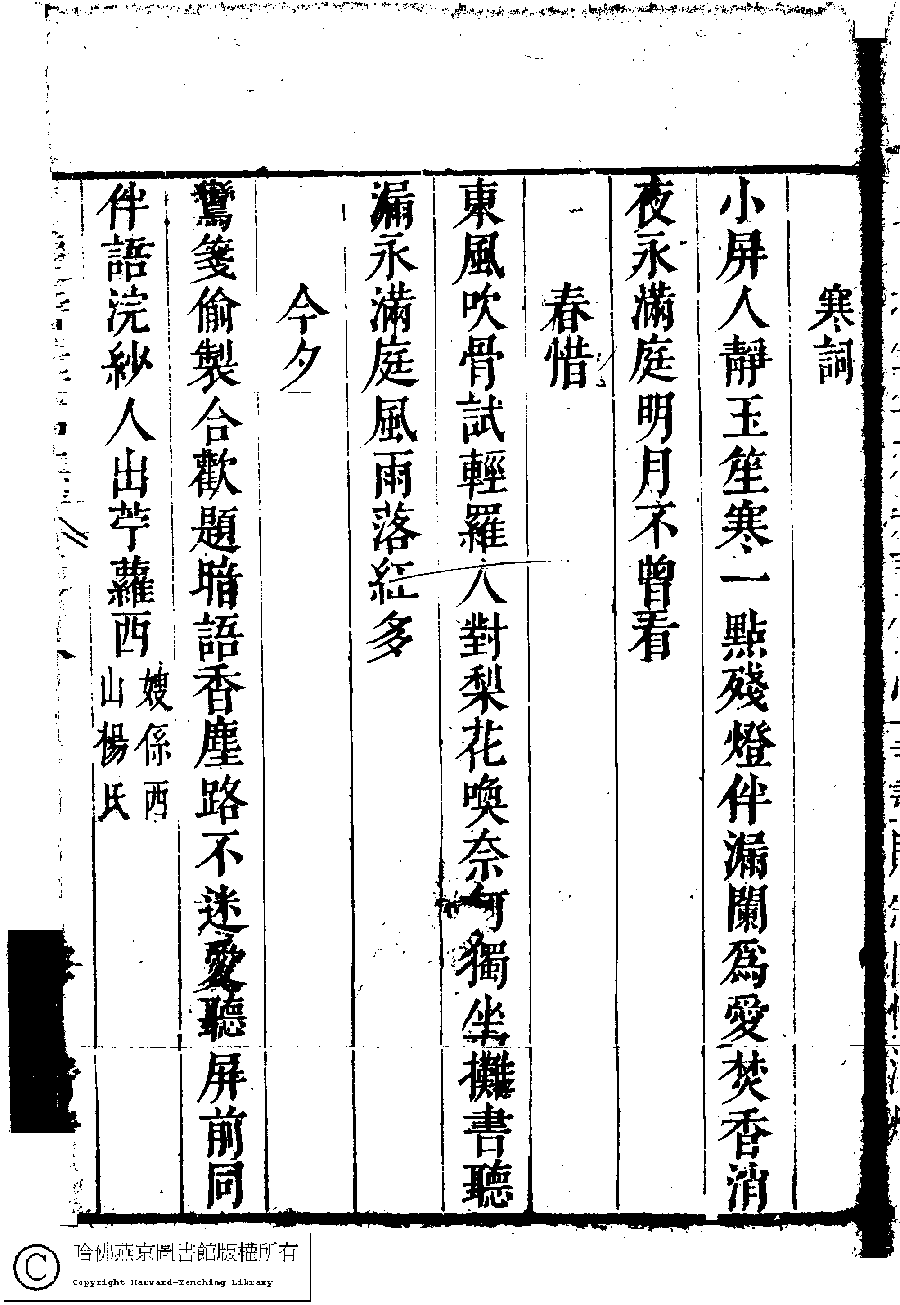 | (PRINT FRIENDLY VERSION) 名媛詩緯初編(清王端淑輯)。清康熙六年(1667)清音堂刻本 ![]() Page : 18.11a | click for larger image | Back |