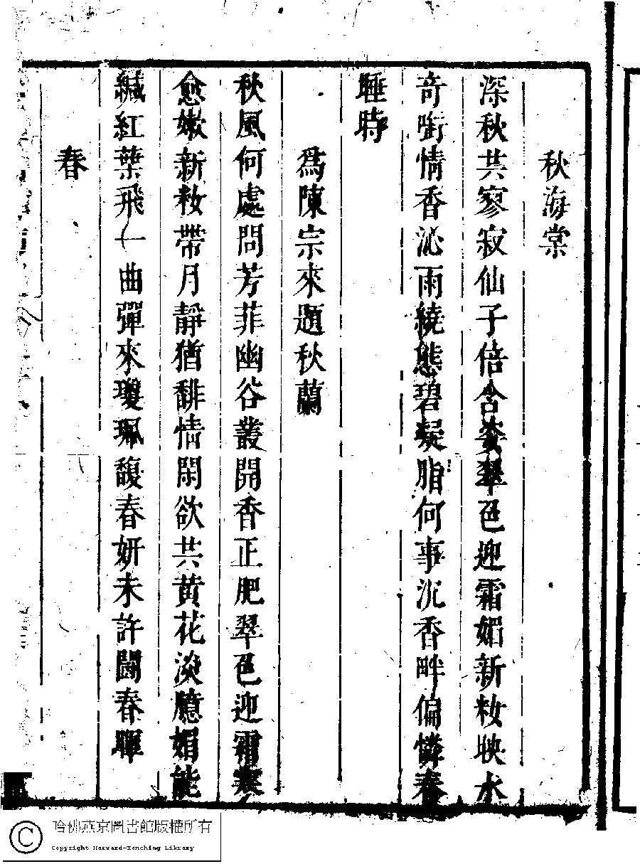 | (PRINT FRIENDLY VERSION) 名媛詩緯初編(清王端淑輯)。清康熙六年(1667)清音堂刻本 ![]() Page : 18.24a | click for larger image | Back |