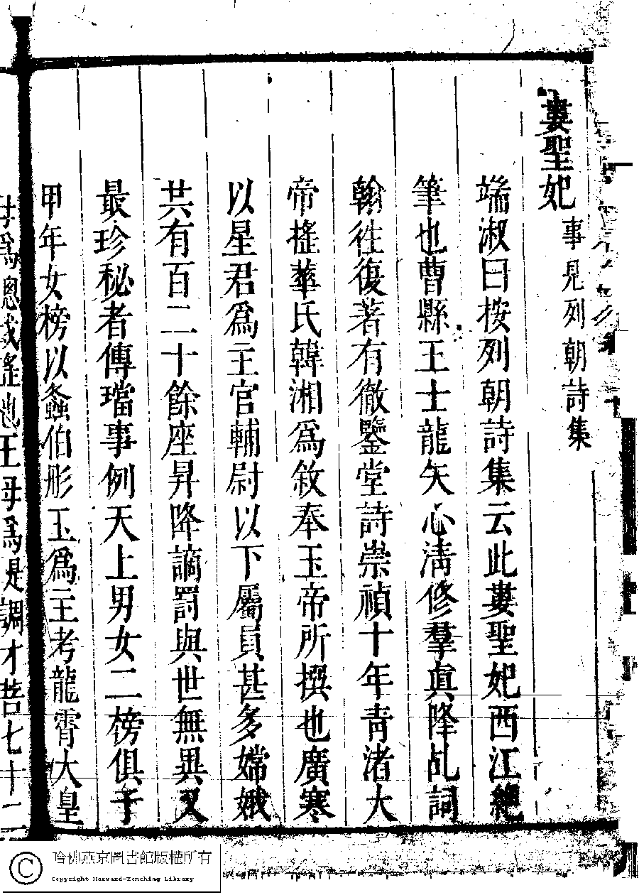 | (PRINT FRIENDLY VERSION) 名媛詩緯初編(清王端淑輯)。清康熙六年(1667)清音堂刻本 ![]() Page : 30.10b | click for larger image | Back |