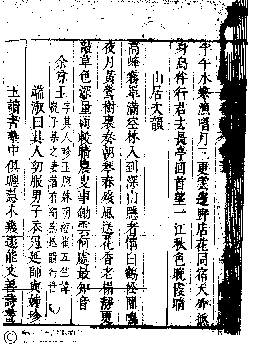 | (PRINT FRIENDLY VERSION) 名媛詩緯初編(清王端淑輯)。清康熙六年(1667)清音堂刻本 ![]() Page : 21.1b | click for larger image | Back |