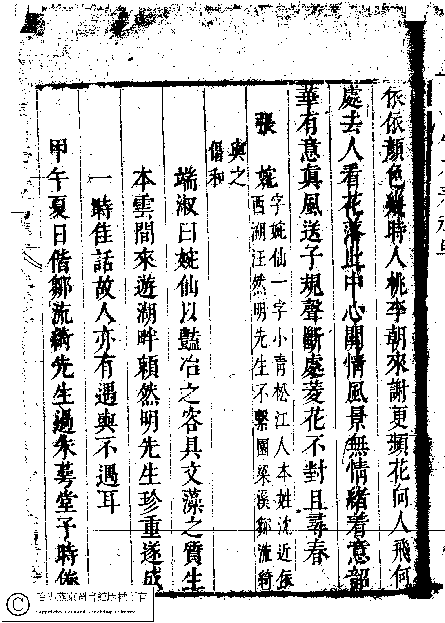 | (PRINT FRIENDLY VERSION) 名媛詩緯初編(清王端淑輯)。清康熙六年(1667)清音堂刻本 ![]() Page : 21.10a | click for larger image | Back |