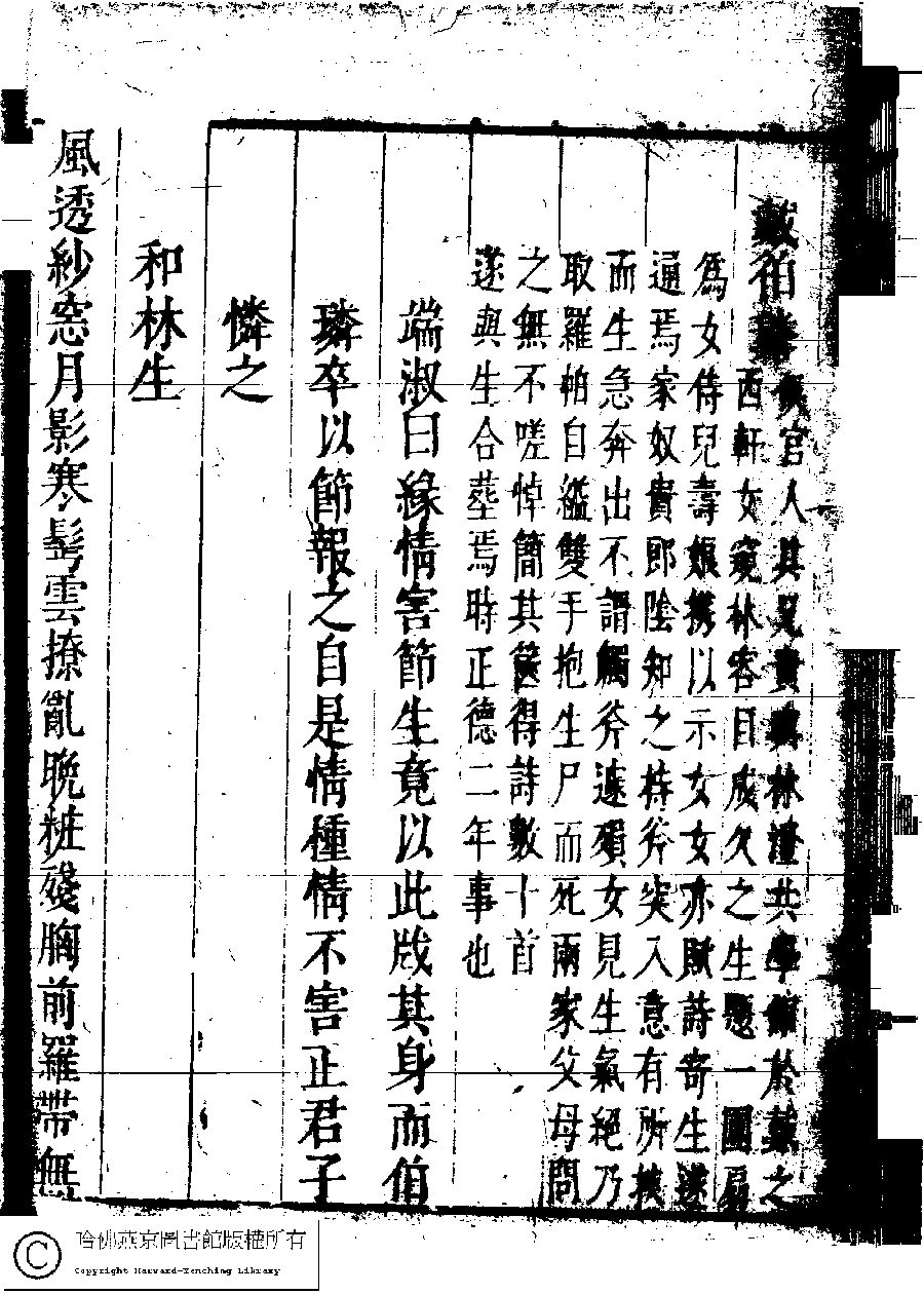 | (PRINT FRIENDLY VERSION) 名媛詩緯初編(清王端淑輯)。清康熙六年(1667)清音堂刻本 ![]() Page : 22.2b | click for larger image | Back |