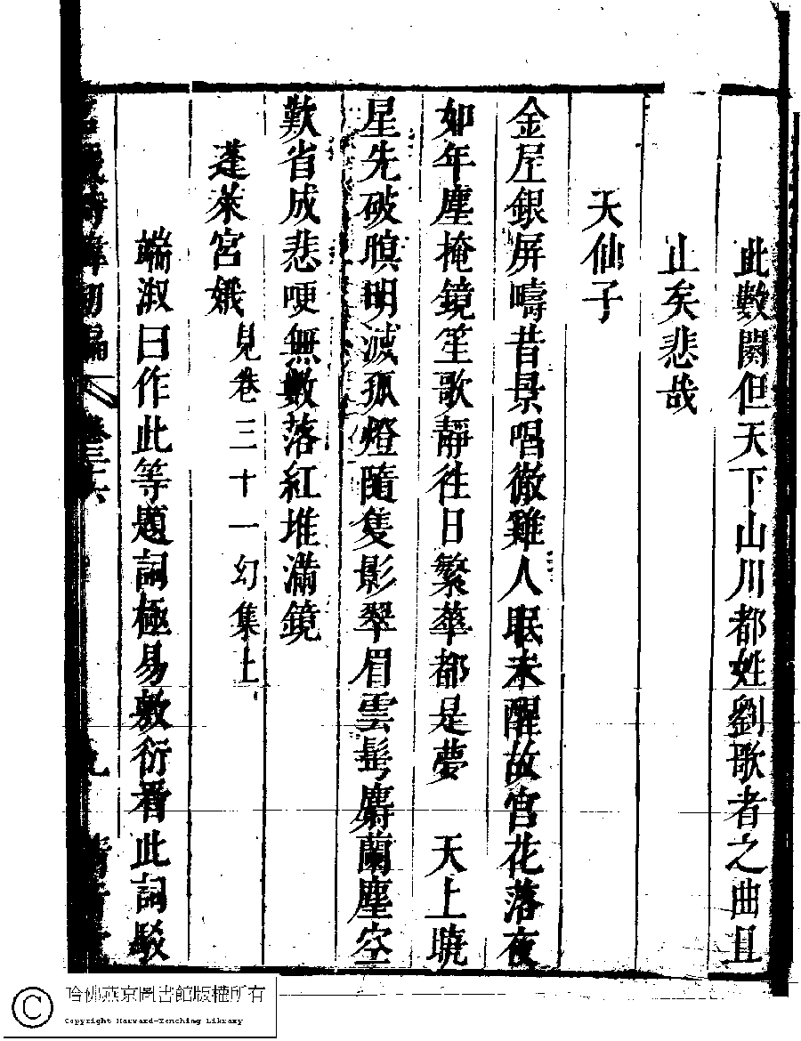 | (PRINT FRIENDLY VERSION) 名媛詩緯初編(清王端淑輯)。清康熙六年(1667)清音堂刻本 ![]() Page : 36.9a | click for larger image | Back |