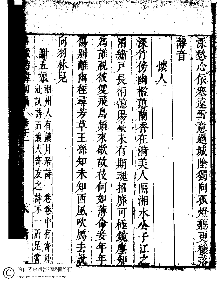 | (PRINT FRIENDLY VERSION) 名媛詩緯初編(清王端淑輯)。清康熙六年(1667)清音堂刻本 ![]() Page : 22.8b | click for larger image | 名媛詩緯初編(清王端淑輯)。清康熙六年(1667)清音堂刻本![]() Page : 22.8a | click for larger image | Back |