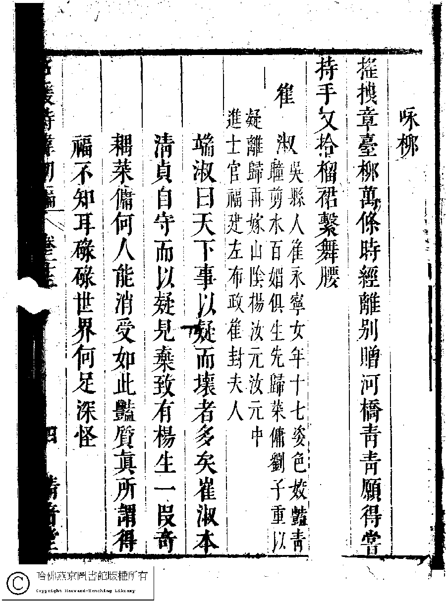 | (PRINT FRIENDLY VERSION) 名媛詩緯初編(清王端淑輯)。清康熙六年(1667)清音堂刻本 ![]() Page : 23.4a | click for larger image | Back |