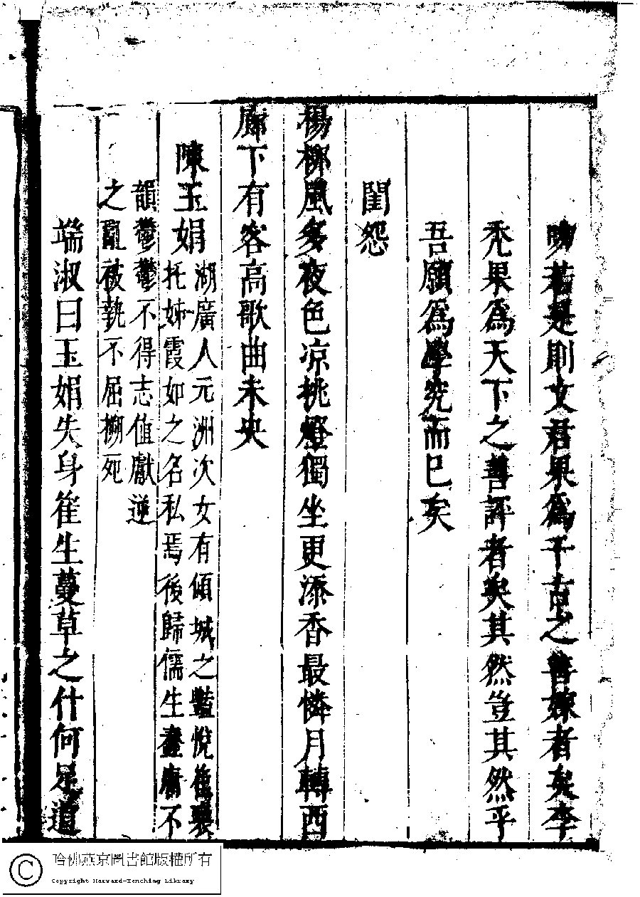 | (PRINT FRIENDLY VERSION) 名媛詩緯初編(清王端淑輯)。清康熙六年(1667)清音堂刻本 ![]() Page : 23.9b | click for larger image | Back |