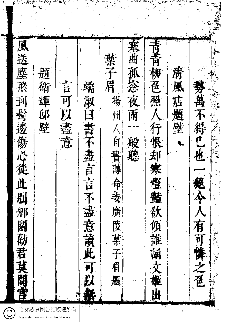 | (PRINT FRIENDLY VERSION) 名媛詩緯初編(清王端淑輯)。清康熙六年(1667)清音堂刻本 ![]() Page : 23.11b | click for larger image | Back |