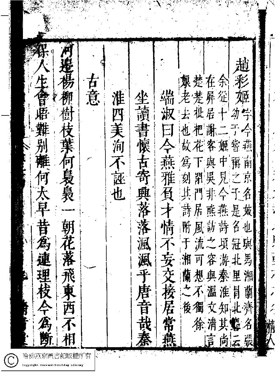 | (PRINT FRIENDLY VERSION) 名媛詩緯初編(清王端淑輯)。清康熙六年(1667)清音堂刻本 ![]() Page : 24.9a | click for larger image | Back |