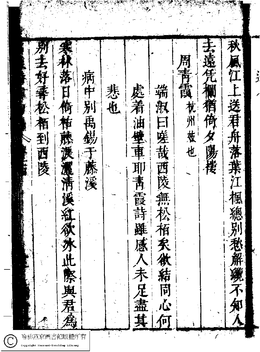 | (PRINT FRIENDLY VERSION) 名媛詩緯初編(清王端淑輯)。清康熙六年(1667)清音堂刻本 ![]() Page : 24.12a | click for larger image | Back |