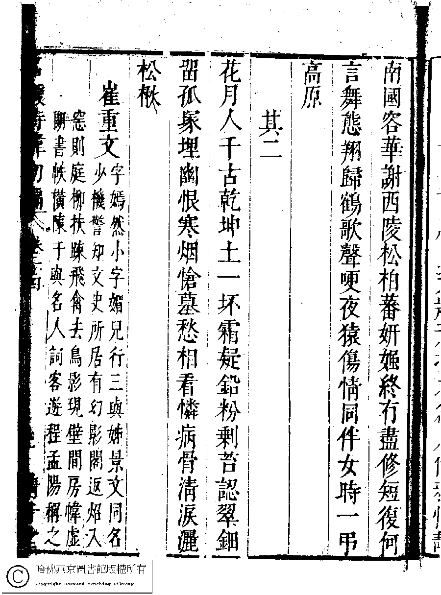 | (PRINT FRIENDLY VERSION) 名媛詩緯初編(清王端淑輯)。清康熙六年(1667)清音堂刻本 ![]() Page : 24.21a | click for larger image | Back |