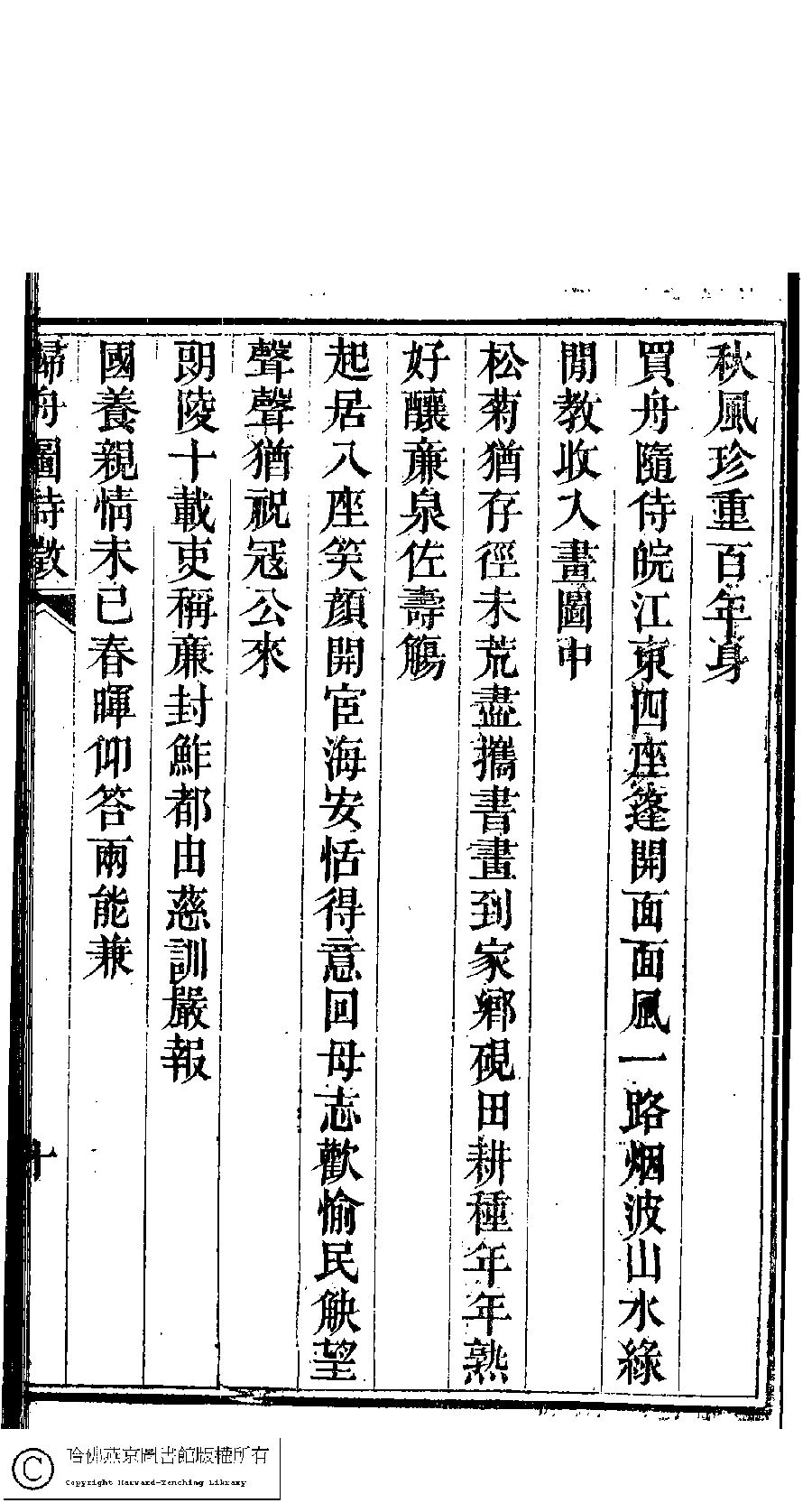 | (PRINT FRIENDLY VERSION) 詠雪樓稿﹕五卷,卷首一卷,附一卷(清甘立媃撰)。清道光二十三年(1843)徐心田半偈齋刻本。 ![]() Page : 5.詩徵.10a | click for larger image | 詠雪樓稿﹕五卷,卷首一卷,附一卷(清甘立媃撰)。清道光二十三年(1843)徐心田半偈齋刻本。![]() Page : 5.詩徵.9b | click for larger image | Back |