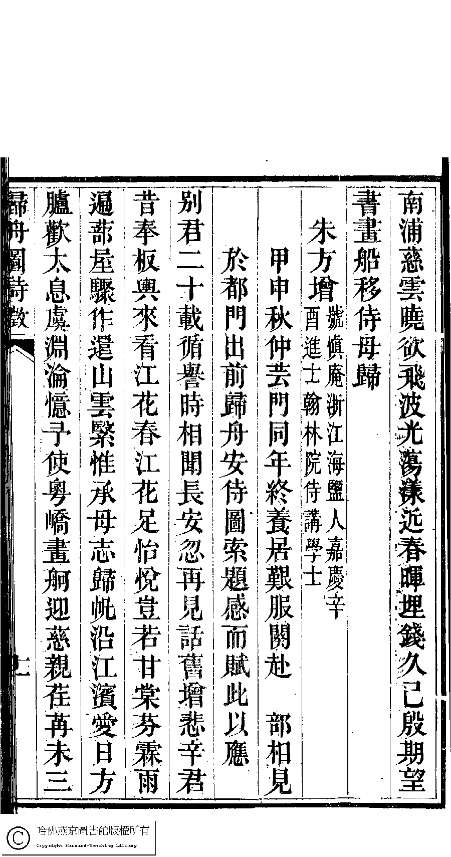 | (PRINT FRIENDLY VERSION) 詠雪樓稿﹕五卷,卷首一卷,附一卷(清甘立媃撰)。清道光二十三年(1843)徐心田半偈齋刻本。 ![]() Page : 5.詩徵.11b | click for larger image | 詠雪樓稿﹕五卷,卷首一卷,附一卷(清甘立媃撰)。清道光二十三年(1843)徐心田半偈齋刻本。![]() Page : 5.詩徵.11a | click for larger image | Back |