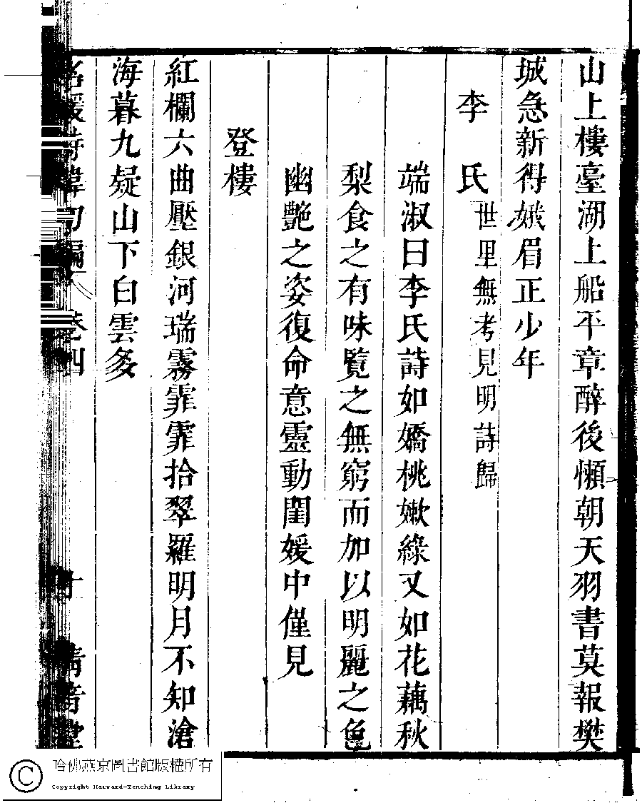 | (PRINT FRIENDLY VERSION) 名媛詩緯初編(清王端淑輯)。清康熙六年(1667)清音堂刻本 ![]() Page : 4.10a | click for larger image | Back |