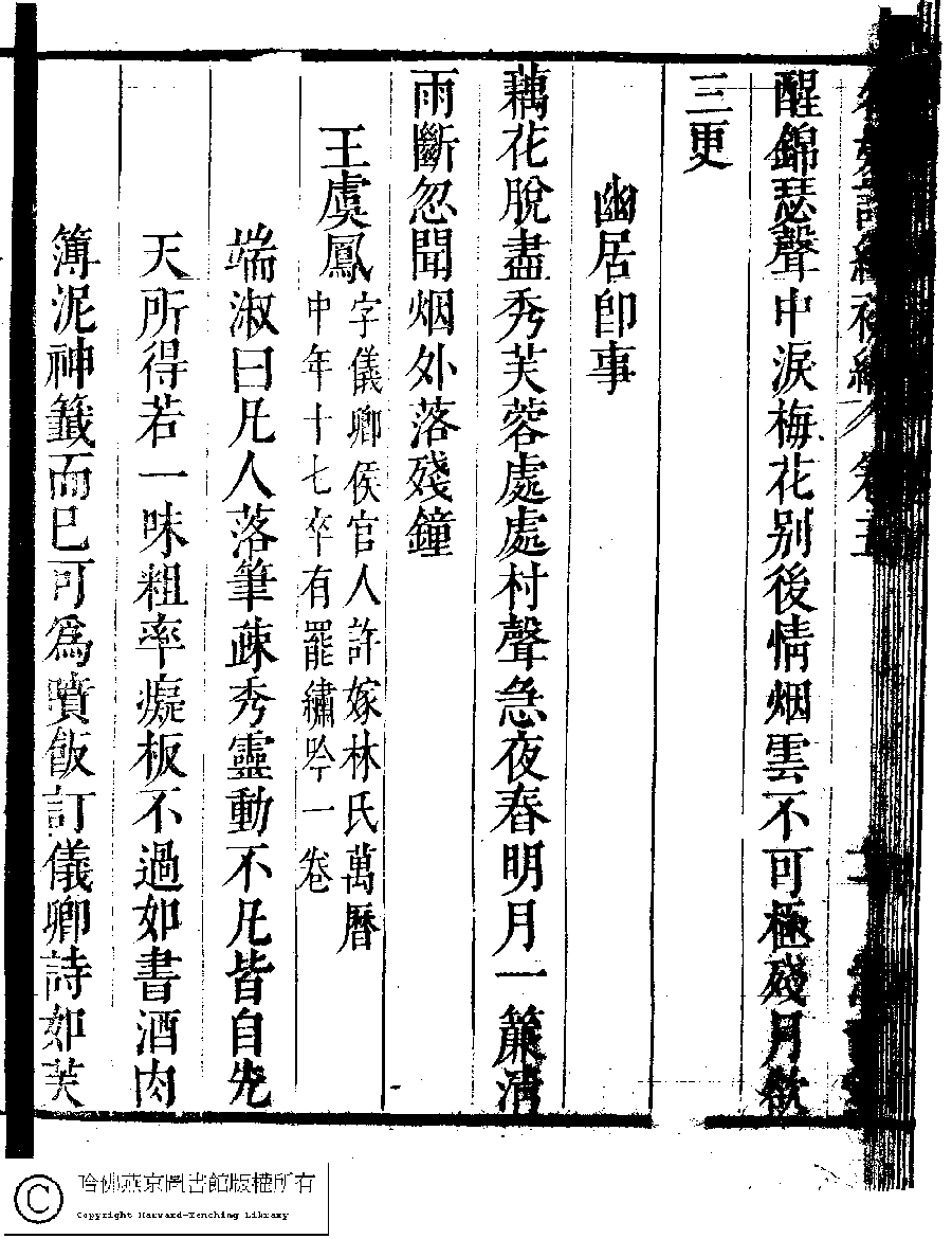 | (PRINT FRIENDLY VERSION) 名媛詩緯初編(清王端淑輯)。清康熙六年(1667)清音堂刻本 ![]() Page : 5.12a | click for larger image | 名媛詩緯初編(清王端淑輯)。清康熙六年(1667)清音堂刻本![]() Page : 5.11b | click for larger image | Back |