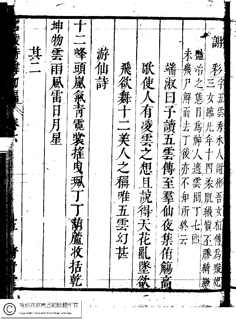| (PRINT FRIENDLY VERSION) 名媛詩緯初編(清王端淑輯)。清康熙六年(1667)清音堂刻本 ![]() Page : 6.15a | click for larger image | Back |