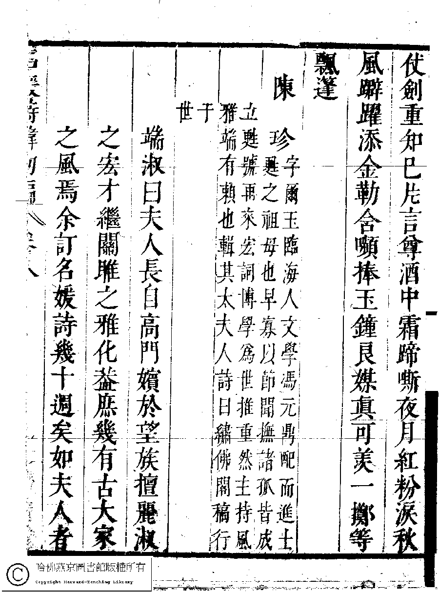 | (PRINT FRIENDLY VERSION) 名媛詩緯初編(清王端淑輯)。清康熙六年(1667)清音堂刻本 ![]() Page : 8.9b | click for larger image | 名媛詩緯初編(清王端淑輯)。清康熙六年(1667)清音堂刻本![]() Page : 8.9a | click for larger image | Back |