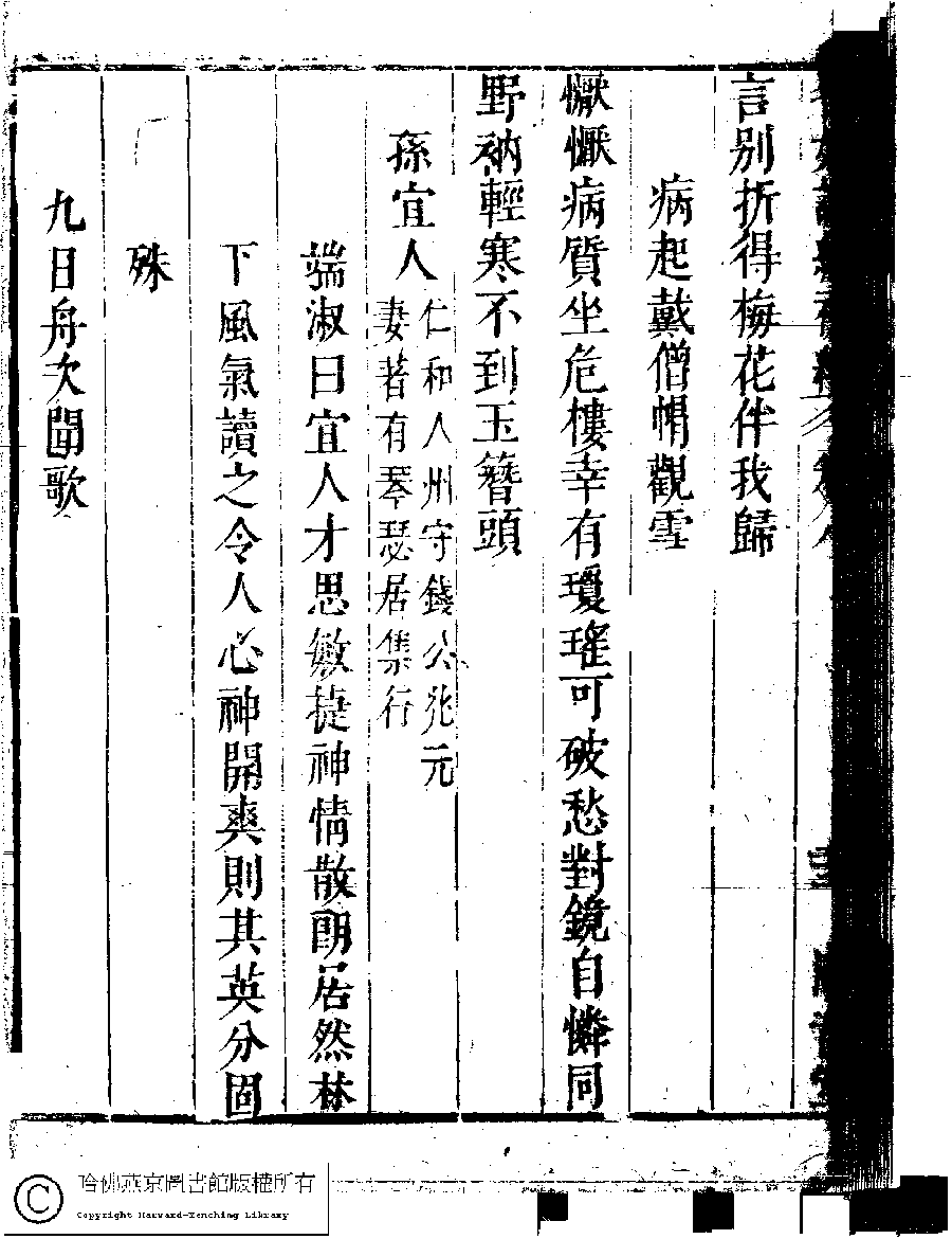 | (PRINT FRIENDLY VERSION) 名媛詩緯初編(清王端淑輯)。清康熙六年(1667)清音堂刻本 ![]() Page : 8.22b | click for larger image | Back |