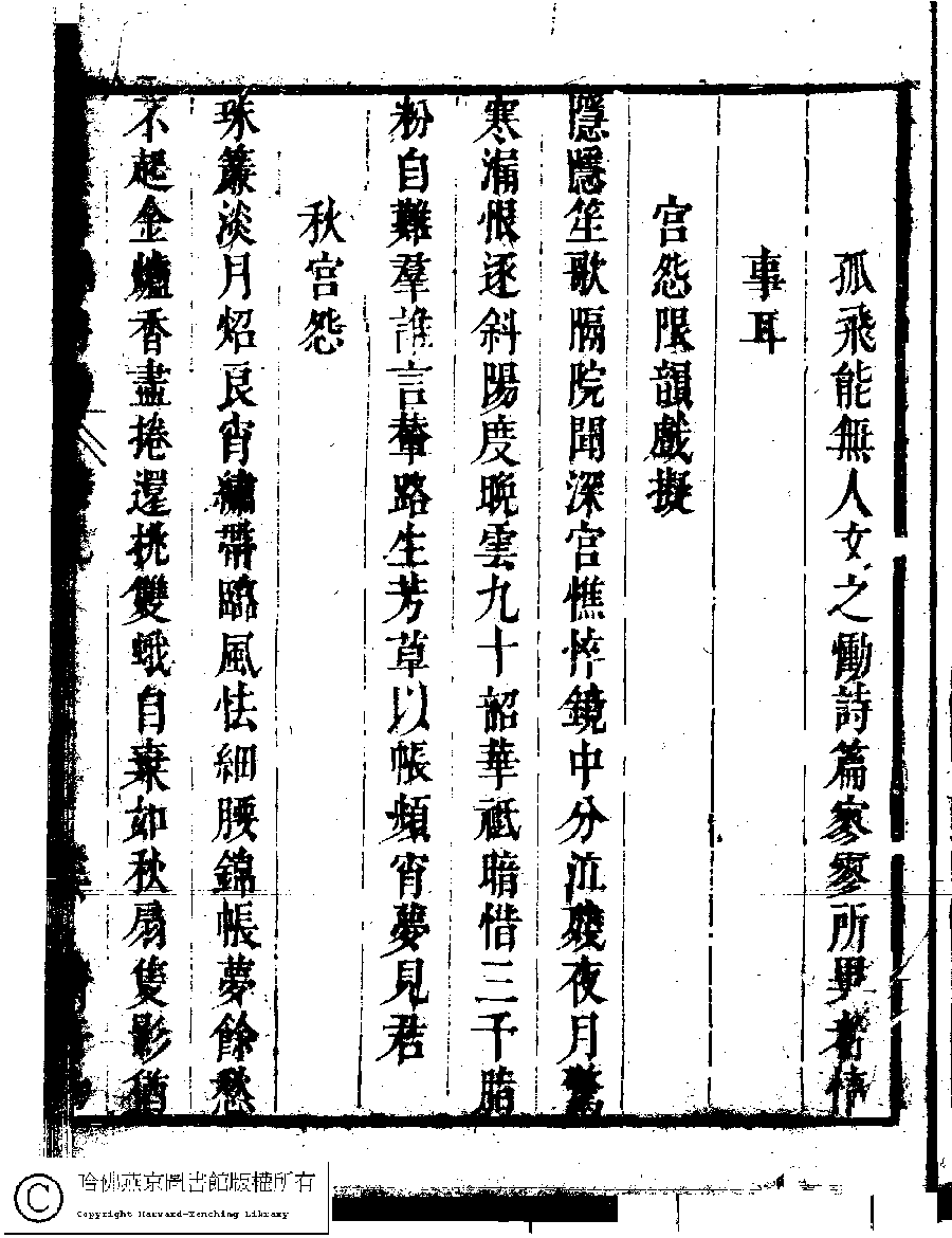 | (PRINT FRIENDLY VERSION) 名媛詩緯初編(清王端淑輯)。清康熙六年(1667)清音堂刻本 ![]() Page : 9.16a | click for larger image | 名媛詩緯初編(清王端淑輯)。清康熙六年(1667)清音堂刻本![]() Page : 9.15b | click for larger image | Back |