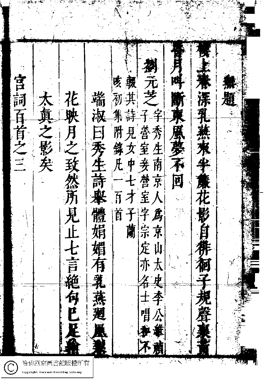 | (PRINT FRIENDLY VERSION) 名媛詩緯初編(清王端淑輯)。清康熙六年(1667)清音堂刻本 ![]() Page : 11.5b | click for larger image | Back |