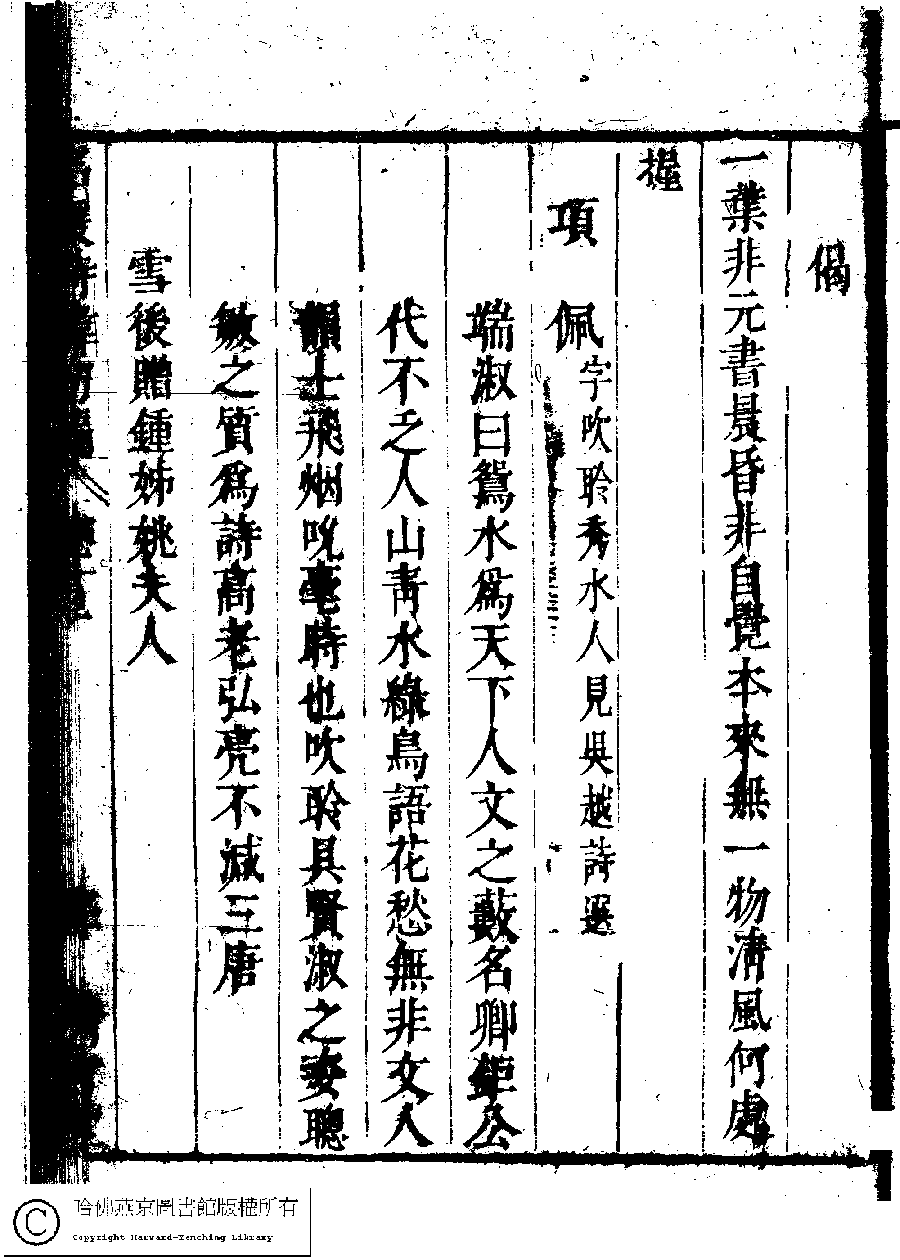 | (PRINT FRIENDLY VERSION) 名媛詩緯初編(清王端淑輯)。清康熙六年(1667)清音堂刻本 ![]() Page : 13.30a | click for larger image | Back |