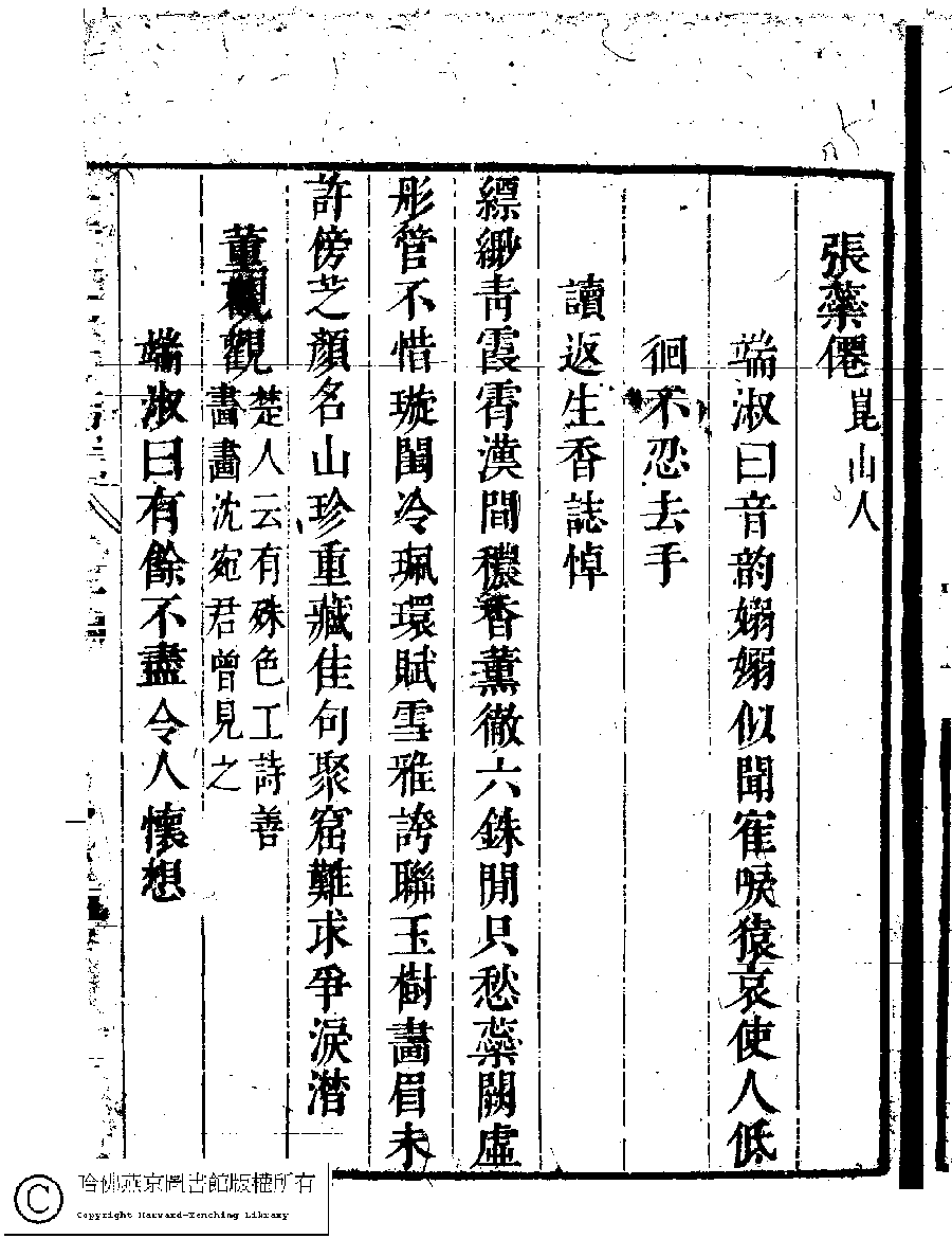 | (PRINT FRIENDLY VERSION) 名媛詩緯初編(清王端淑輯)。清康熙六年(1667)清音堂刻本 ![]() Page : 14.9a | click for larger image | Back |