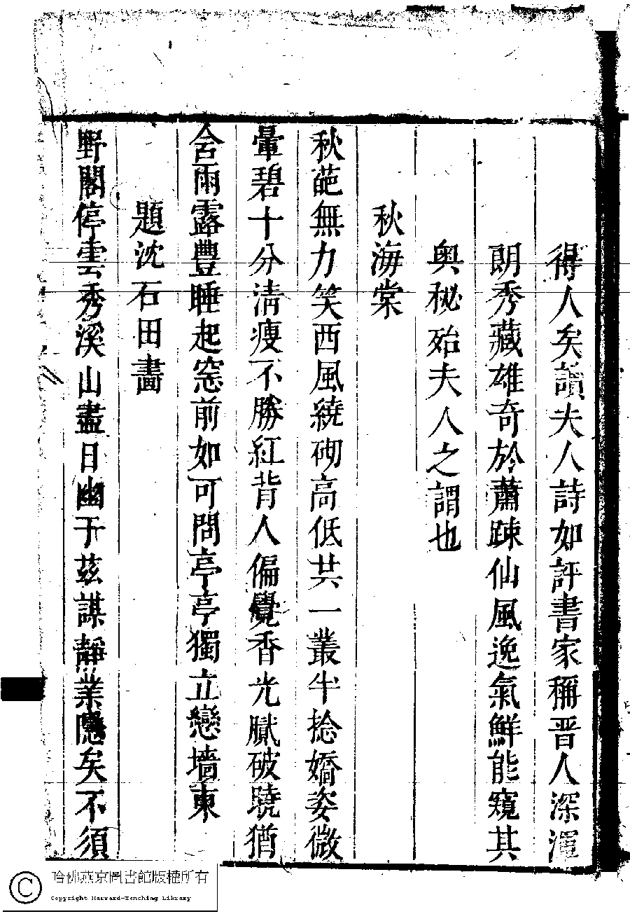 | (PRINT FRIENDLY VERSION) 名媛詩緯初編(清王端淑輯)。清康熙六年(1667)清音堂刻本 ![]() Page : 15.21a | click for larger image | 名媛詩緯初編(清王端淑輯)。清康熙六年(1667)清音堂刻本![]() Page : 15.20b | click for larger image | Back |