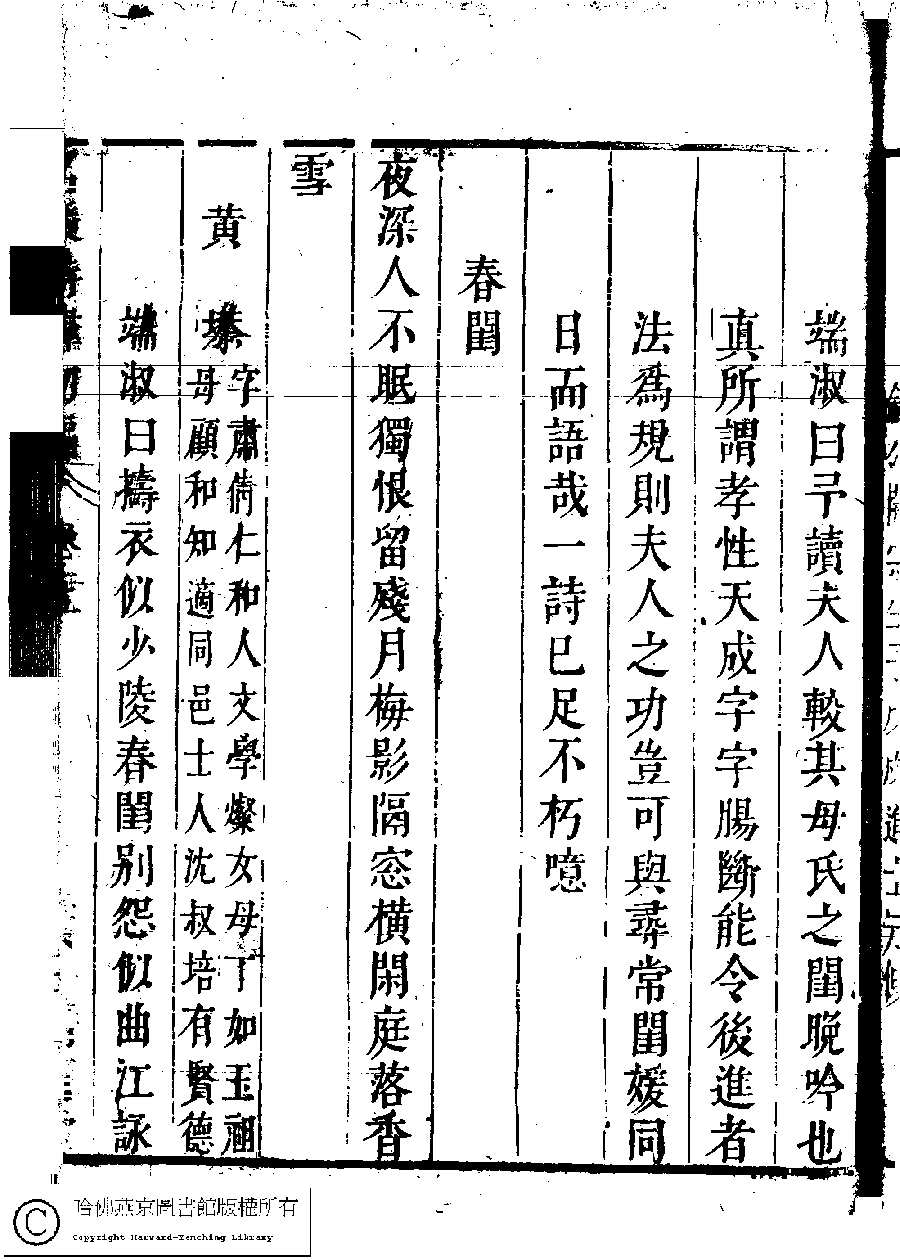 | (PRINT FRIENDLY VERSION) 名媛詩緯初編(清王端淑輯)。清康熙六年(1667)清音堂刻本 ![]() Page : 15.26a | click for larger image | Back |