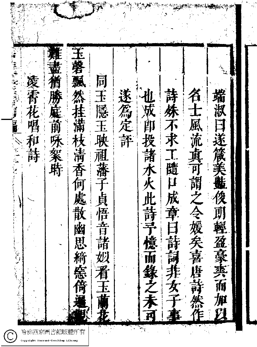 | (PRINT FRIENDLY VERSION) 名媛詩緯初編(清王端淑輯)。清康熙六年(1667)清音堂刻本 ![]() Page : 17.7a | click for larger image | Back |