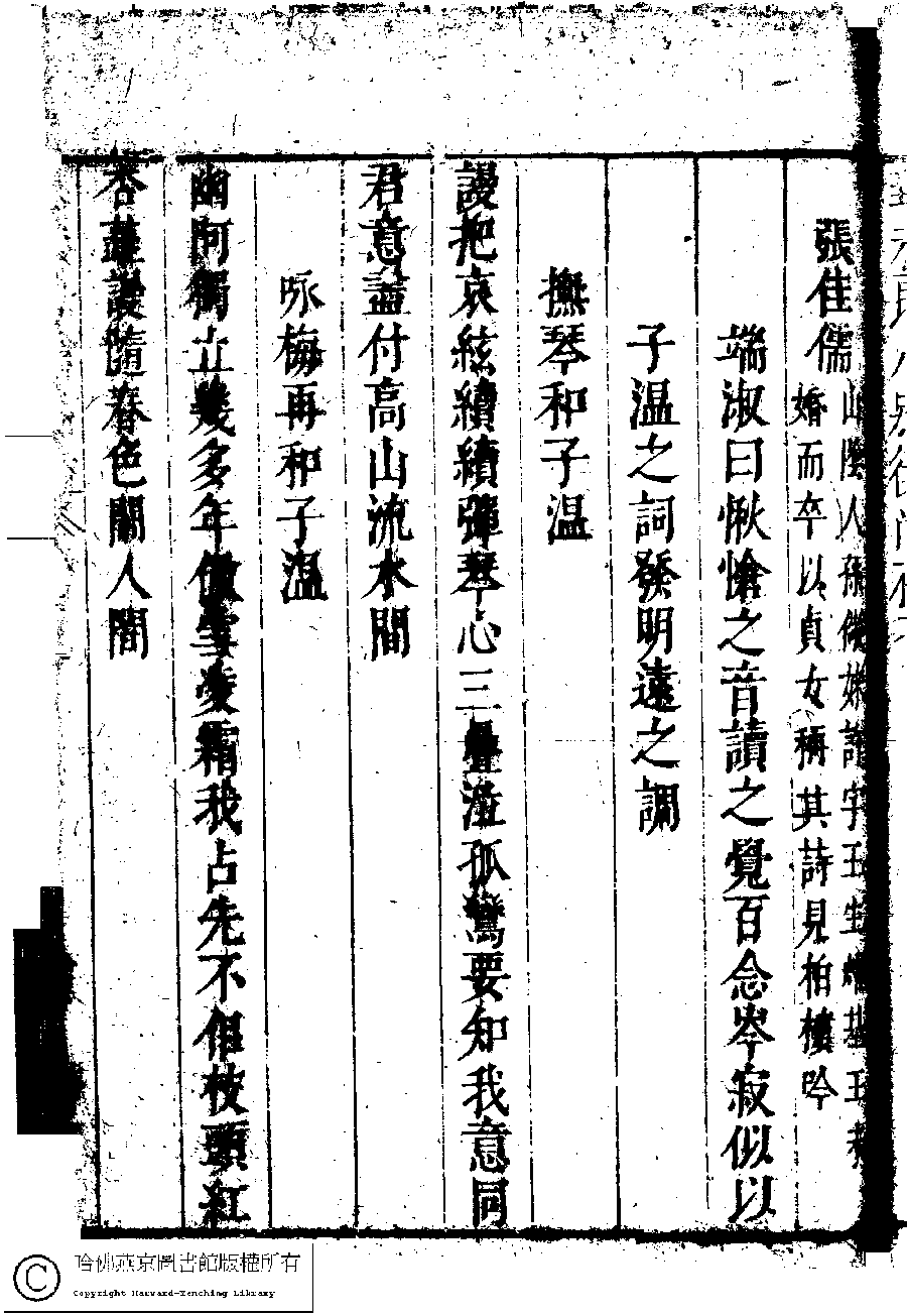 | (PRINT FRIENDLY VERSION) 名媛詩緯初編(清王端淑輯)。清康熙六年(1667)清音堂刻本 ![]() Page : 18.17a | click for larger image | Back |
